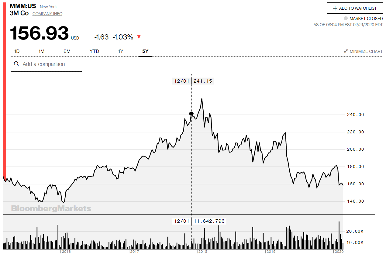 그중에서 기술주 중심의 미국 주식들의 그래프가 너무 부담스럽고 장기적인 글로벌 경제전망에 긍정적인 투자자라면 3M 같은 주식은 지금 주가 수준에서 충분히 투자 가능한 수준이라고 보입니다. 3M은 국내에도 분석된 자료들이 많이 있어 접근하기도 용이한 편입니다.