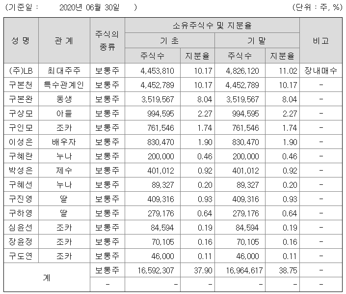 엘비세미콘은 구본천 엘비인베스트먼트 부회장이 최대주주로 있는 범LG계열로 분류될 수 있는 기업입니다. 정확히는 (주)LB가 11.02%의 지분을 가진 최대주주이고 구인회 LG창업가의 손자인 구본천 부회장이 10.17% 지분을 가지고 있습니다. 그리고 (주)LB의 최대주주도 28.27%의 지분을 가진 구본천 부회장입니다.