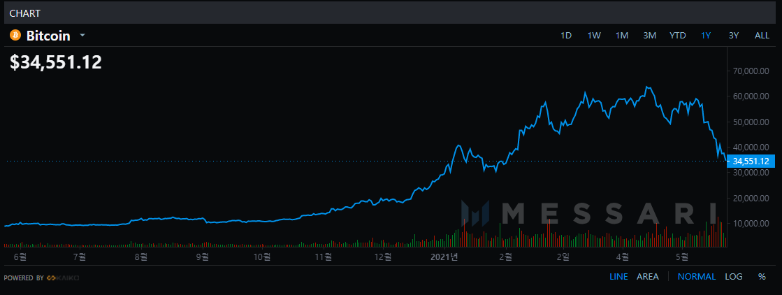 시작이 중국의 류허 부총리였는지 머스크의 트윗이 보여준 버블의 징조였는지는 모르겠지만 이번 유동성 파티의 주 메뉴였던 비트코인이 급격히 하락하고 있습니다. 4~5월 6만$을 상회하던 Bitcoin 가격을 떠올려보면 불과 한 달만에 무슨 일이 있었나 싶을 정도입니다. 주식시장에서 이유 없는 급등과 급락은 가장 무서운 것 중 하나입니다.