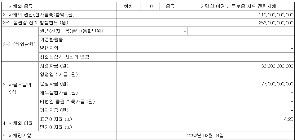 - 전환청구기간 : 2023년 2월 4일 ~ 2052년 1월 4일
