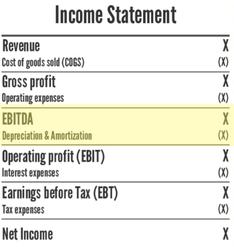 차감하기 전이라는 표현이 부담스러우면 당기순이익에 법인세와 이자, 감가상각비를 더한 것이 EBITDA라고 계산할 수도 있습니다. 당기순이익에는 영업이익 외에도 영업외이익도 포함되기에 실무적으로는 영업이익에 감가상각비를 더해서 EBITDA를 계산하는 편이 일반적입니다.