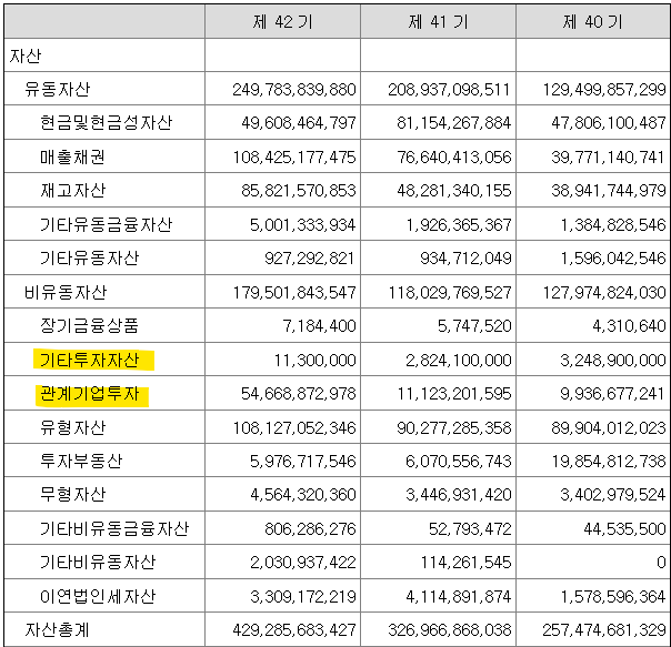 만약 한미반도체가 테슬라 주식을 100억원 산다면 위 기타투자자산에 포함될 것이고 HPSP 지분을 10% 추가 취득한다면 관계기업투자 장부가가 그만큼 늘어나게 됩니다.